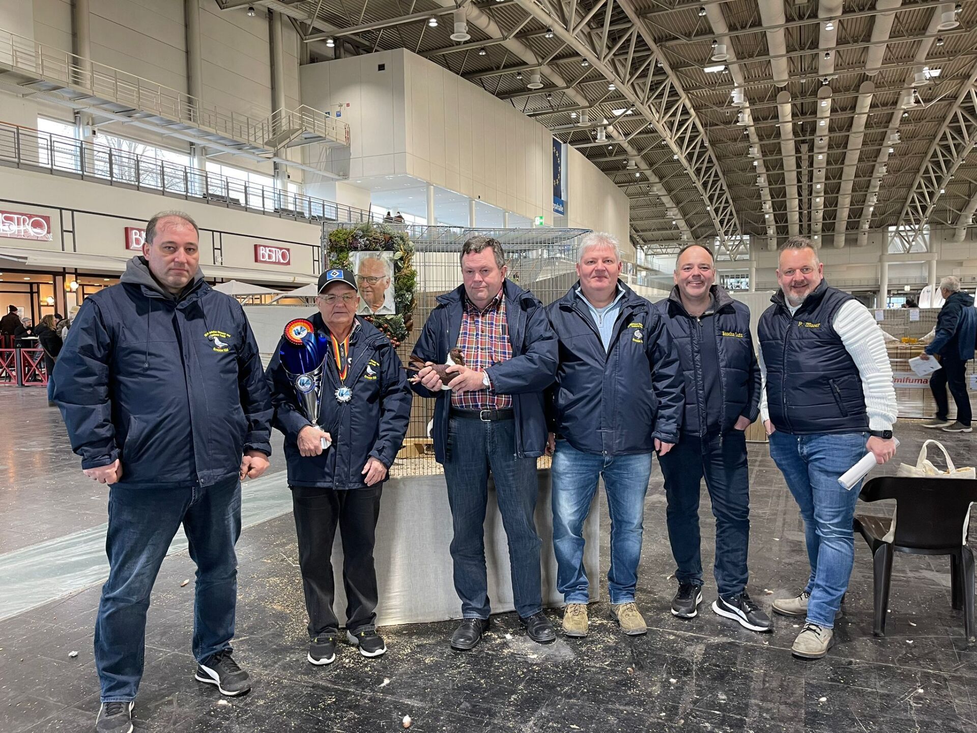 Einige Züchterfreunde unseres Sondervereins mit dem VDT-Champion Werner Moser auf der VDT-Schau in Hannover.