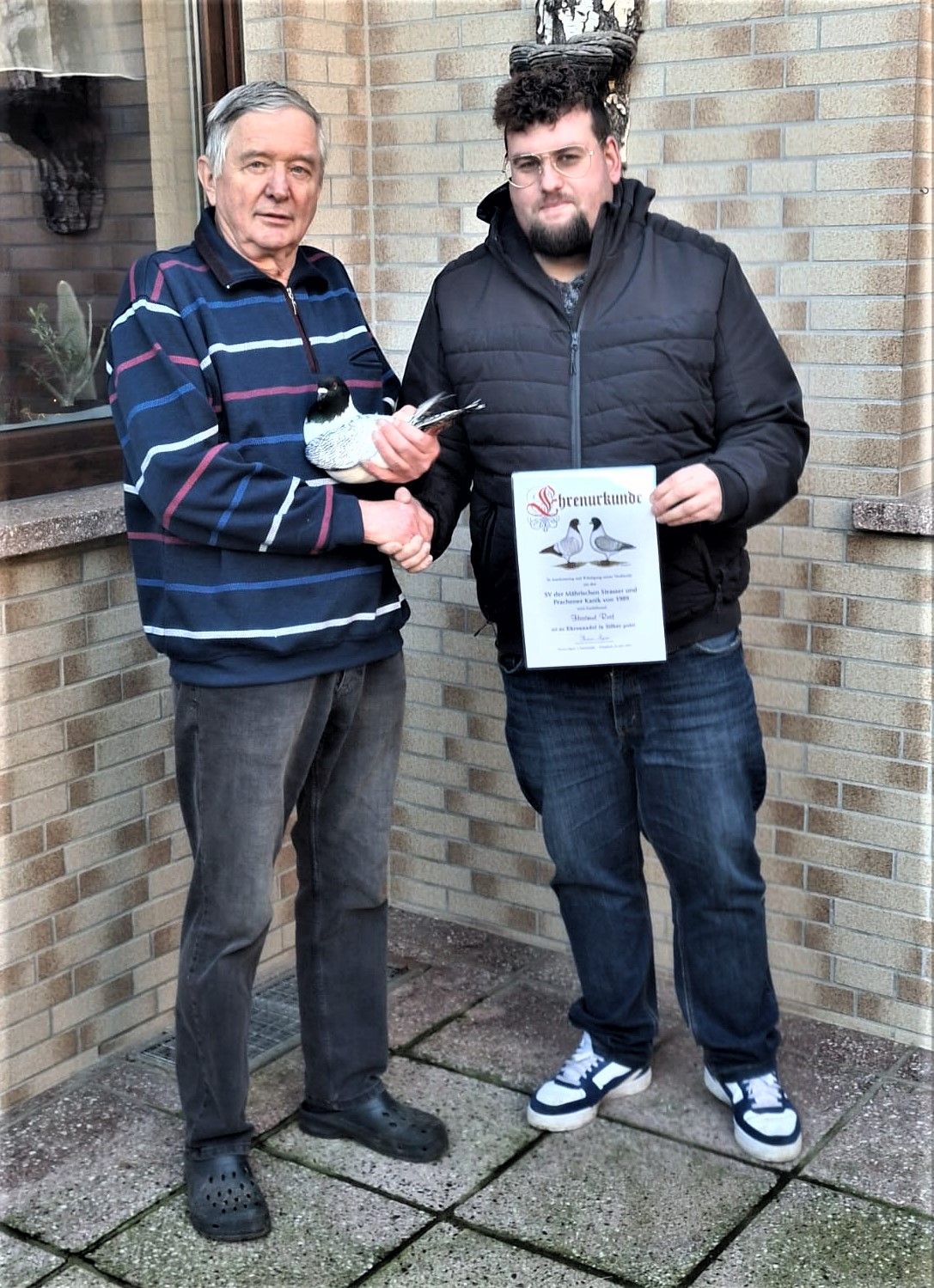 - 🕊️ Den Klaus-Gebhard-Gedächtnispreis errang die Zuchtgemeinschaft Franz und Michael Kaiser mit ihren Mährischen Strasser weißschwänzig stahlblau ohne Binden, die 573 Punkte erzielten.