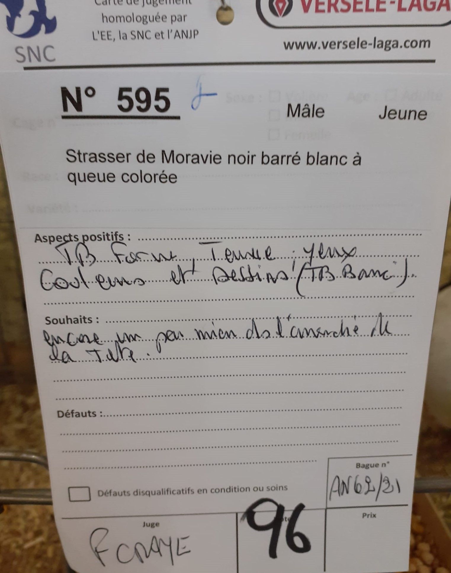 Auf Einladung des Vorsitzenden des Sondervereins der Strasser und Mährischen Strasser Pierre Tabourin wurde ich zur Internationalen französischen Schau in Mühlhausen zur Bewertung der Mährischen Strasser verpflichtet. Dieser Einladung bin ich sehr gerne nachgekommen. Ich habe ein paar schöne Tage in Frankreich verbracht und möchte mich herzlich für die Gastfreundschaft bedanken. Ein Großteil der Tiere wurde von mir bewertet, die anderen von Florian Bühler, der kurzfristig für den ausgefallenen französischen Preisrichter eingesprungen war. Erfreulich ist, daß es in der Zuchtausrichtung keine Unterschiede zu den Tauben in Deutschland gibt. Die Spitzentiere sind meiner Meinung nach in beiden Ländern vergleichbar und auf einem hohen Niveau.
