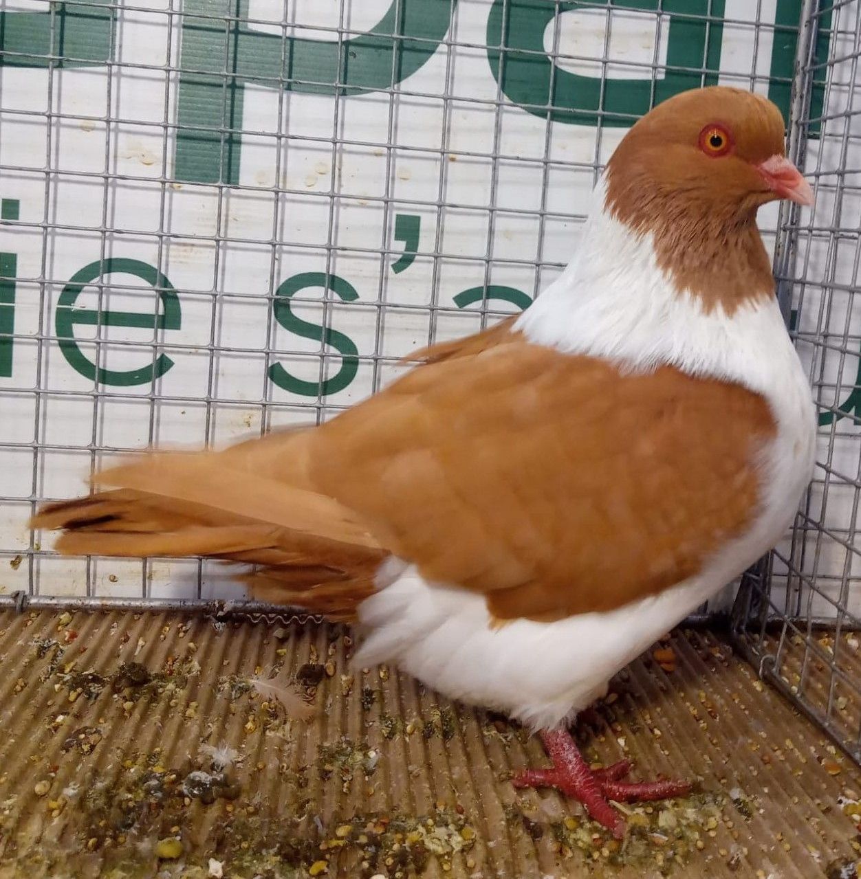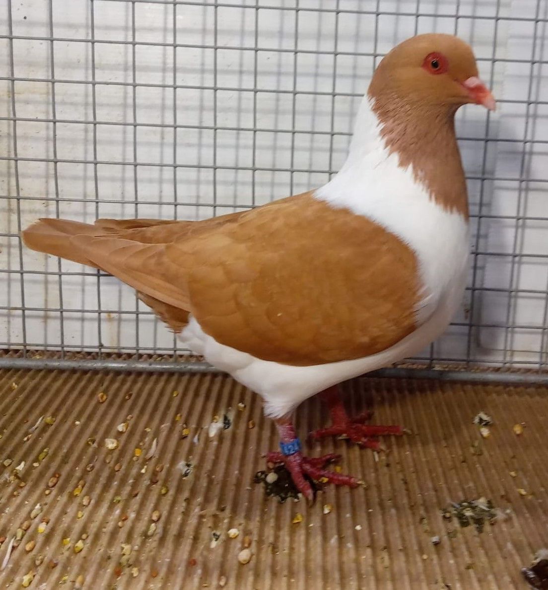 Auch bei den 12 Rotfahlen mit roten Binden wurden 3 Tiere wegen Konditionsmängeln aus der Wertung genommen. Diese hatten auch keinerlei Zuchtwert, da sie deutlich zu schwach im Körper waren und es sich um Mischfarben handelte. Tiere mit unreiner Schildfarbe (sooty-Faktor), weißem Keil, Kopfplatte und langgezogene Köpfe wurden deutlich zurückgesetzt. Eine Jungtäubin von Tholy Thierry überzeugte in allen Hauptrassemerkmalen mit 96 Punkten (Wunsch: Hinterkopfzeichnung besser putzen).