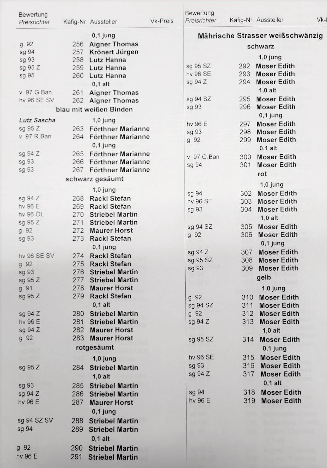 Bei der Gruppenschau standen ca. 350 Mährische Strasser und Prachener Kanik, die als Gedächtnisschau
