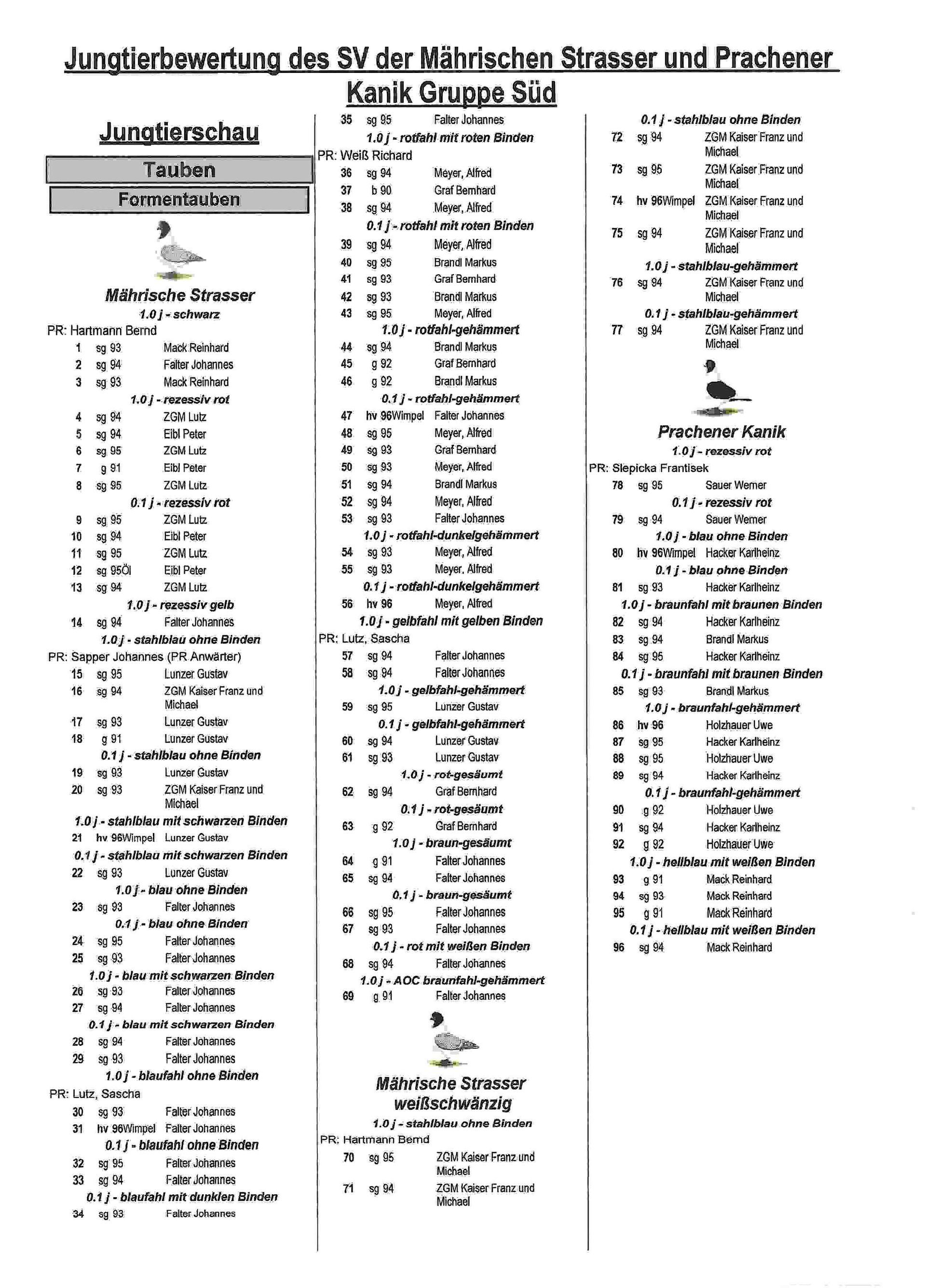 Zum Ende steht noch ein Katalog der bewerteten Tauben.