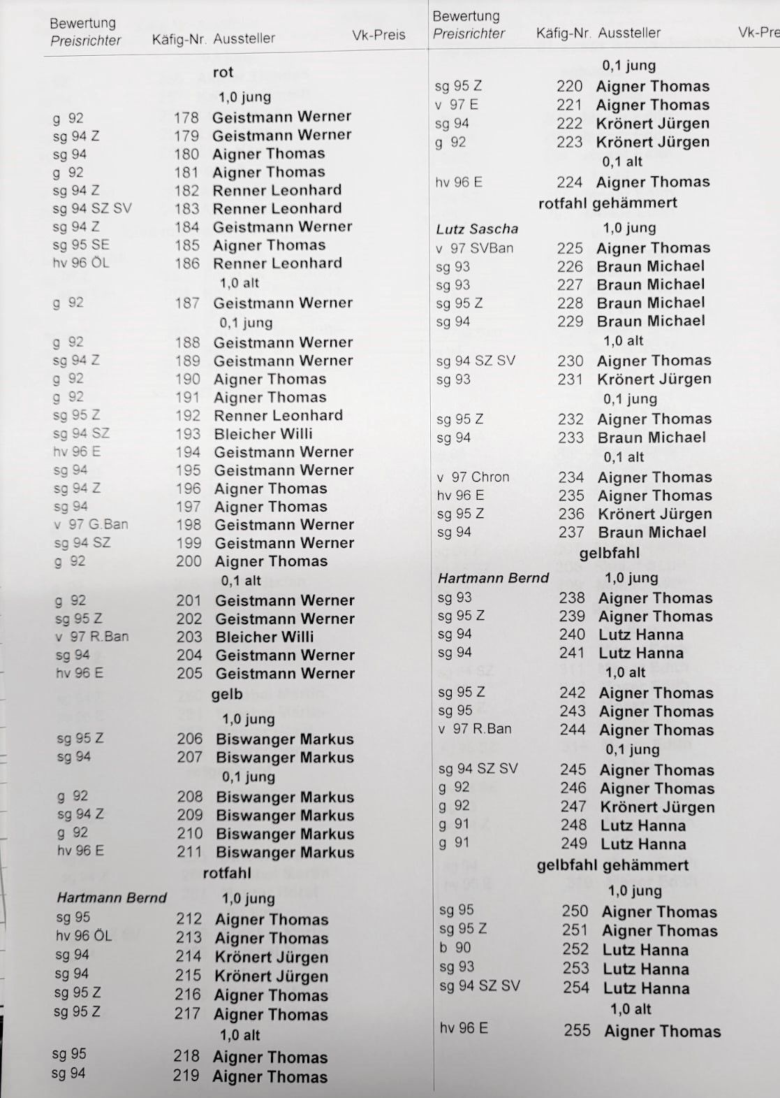Somit streifte Thomas Aigner die Saison und berichtete von der gemeinsamen Schau Strakonice in der Werner Moser das beste Tier der Schau, einen 1,0 schwarz stellte. Ebenfalls eine herausragende Gesamtleistung von Christopher Teichmann auf gelbfahl (6 Tiere, davon 1x v97 & 5x hv96). Auch Thomas Aigner und Werner Sauer stellten mit Erfolg aus. An der VDT-Schau in Erfurt stellte Neo Teichmann den Deutschen Jugendchampion mit einer 0,1 Blau ohne Binden. Auch hier allen Preisträgern von allen Schauen ein herzlicher Glückwunsch.